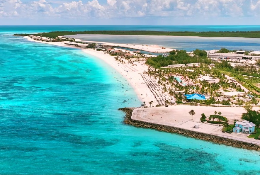 Acesta este Bimini Beach Club, clubul privat de plajă al Virgin Voyages din Bahamas.